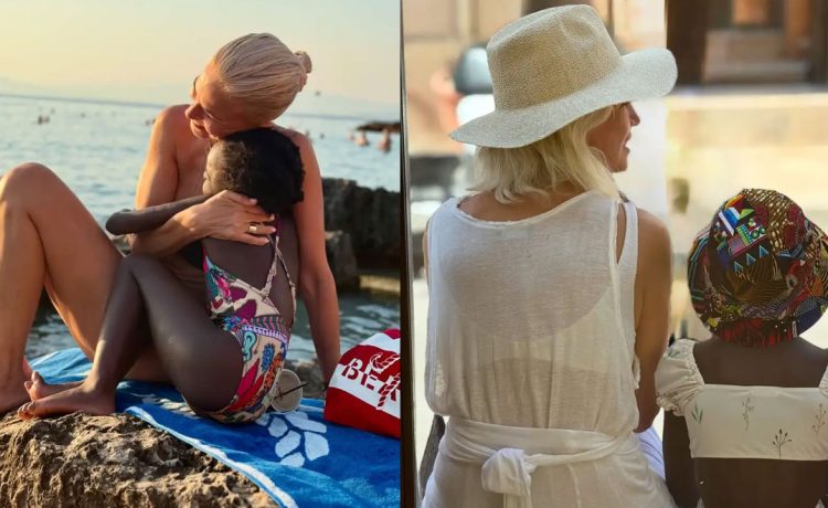 Σε μία από αυτές, εκείνη και η κόρη της απαθανατίζονται αγκαλιασμένες στην παραλία, φορώντας τα μαγιό τους.