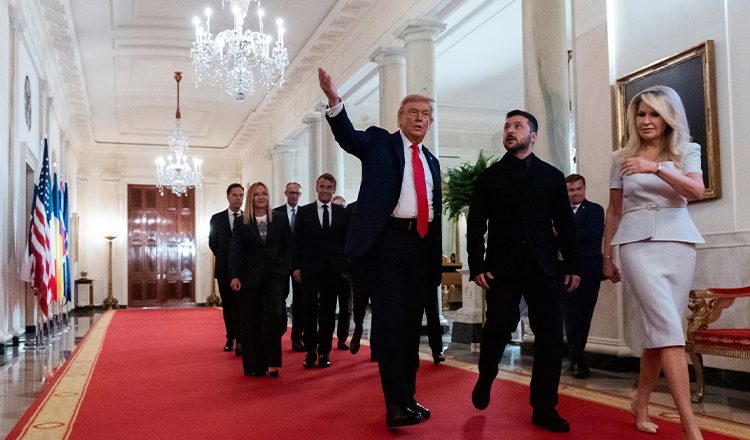 Παρά την παρακίνηση από δημοσιογράφους συντηρητικών μέσων, ο Τραμπ επέδειξε μεγάλη αυτοσυγκράτηση στη συνέντευξη Τύπου με τον Ζελένσκι στο Οβάλ Γραφείο, λέγοντας απλά: «Όλοι εργαζόμαστε για τον ίδιο στόχο, πολύ απλό στόχο – θέλουμε να σταματήσουμε τον πόλεμο» είπε ο Τραμπ.