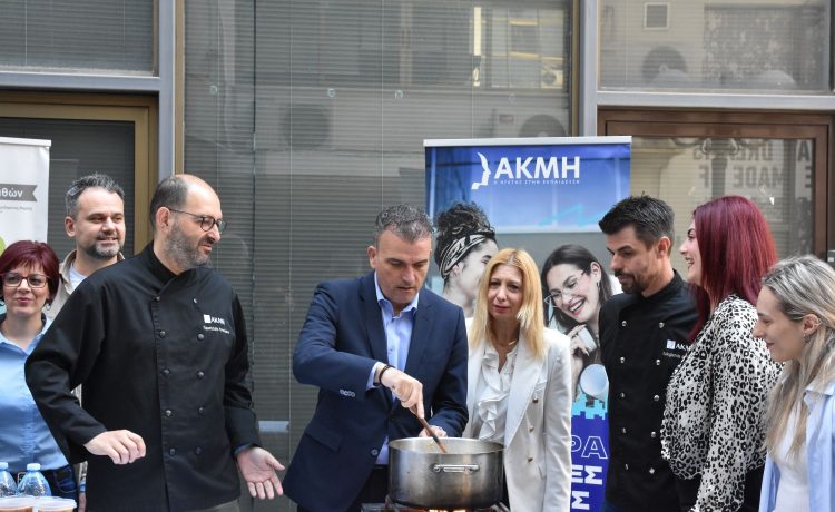 Στον χώρο του Παντοπωλείου επίσης, οι μαθήτριες και μαθητές του ΙΕΚ «Ακμή» φρόντισαν για την προσφορά σιμιγδαλένιου χαλβά.