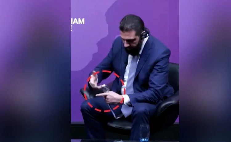 Το περιστατικό σημειώθηκε στο Chatham House στο Λονδίνο, όπου ο Αλ-Σάρα, συμμετείχε σε συζήτηση και δεχόταν ερωτήσεις για κρίσιμα γεωπολιτικά ζητήματα. Τη στιγμή που του τέθηκε μια δύσκολη ερώτηση σχετικά με τις ρωσικές βάσεις στη Συρία, ο ίδιος επιχείρησε να πιει νερό.