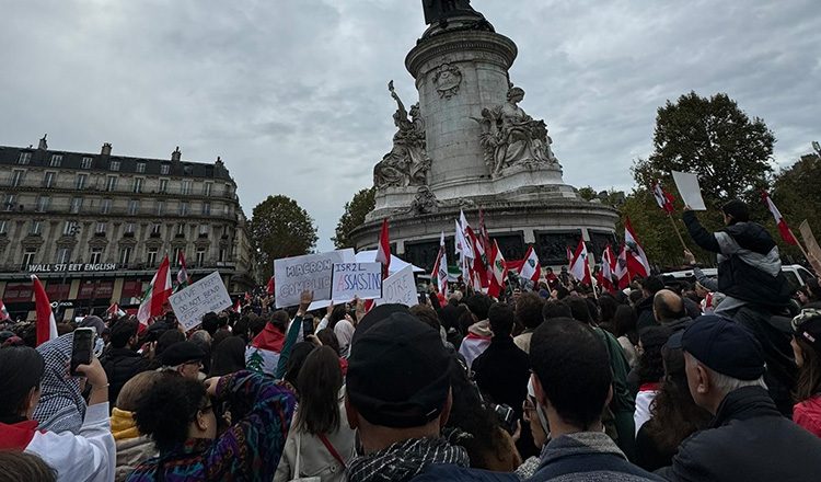 Οι διαδηλωτές, άνθρωποι όλων των ηλικιών σύμφωνα με το Γαλλικό Πρακτορείο, συγκεντρώθηκαν στην Πλατεία Δημοκρατίας και φώναζαν συνθήματα όπως: «Κάτω τα χέρια από τον Λίβανο», «Ισραήλ δολοφόνος, Μακρόν συνένοχος» και «Ο Νετανιάχου είναι τρομοκράτης».