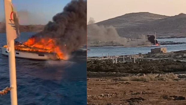 Ειδικότερα, σήμανε συναγερμός στη Μύκονο όταν στελέχη του τοπικού Λιμεναρχείου ενημερώθηκαν για φωτιά σε σκάφος λίγο πιο έξω από την Δήλο.
