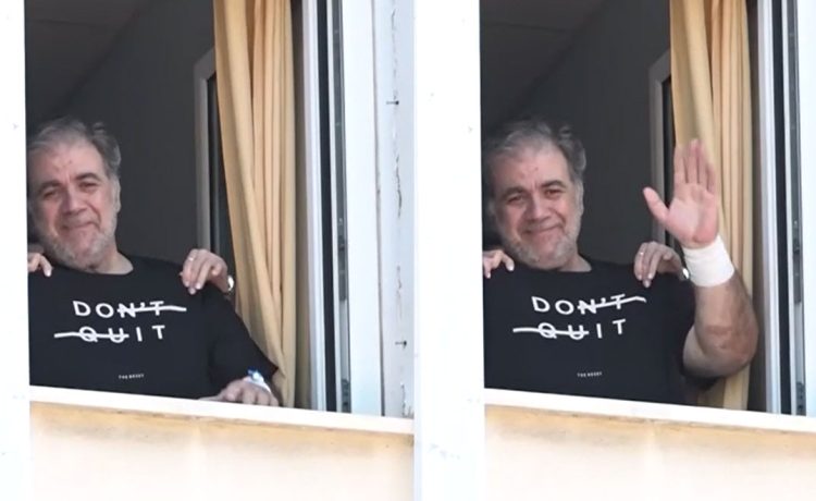 Λίγη ώρα μετά τις 12 το μεσημέρι, ο Δημήτρης Σταρόβας βγήκε στο παράθυρο του δωματίου στο οποίο νοσηλεύεται όλες αυτές τις ημέρες και εμφανώς συγκινημένος έστειλε τους χαιρετισμούς του στο κοινό, φορώντας μία μπλούζα με τυπωμένο το μήνυμα: Μην παραιτείσαι.