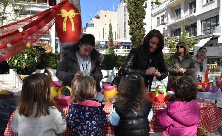 Με πολύχρωμες λαμπάδες, χειροτεχνίες, χάρτινα καλαθάκια και πασχαλινές κάρτες, δια χειρός μικρών δημιουργών γέμισε η πλατεία Ταχυδρομείου, στο πλαίσιο της εκδήλωσης που διοργάνωσε η Αντιδημαρχία Παιδείας και το Τμήμα Παιδικών Σταθμών του Δήμου Λαρισαίων.