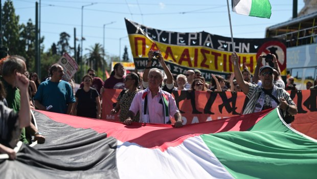 Με φωνές αλληλεγγύης και πανό για την Παλαιστίνη, πλήθος κόσμου συγκεντρώθηκε το μεσημέρι του Σαββάτου στο Σύνταγμα.