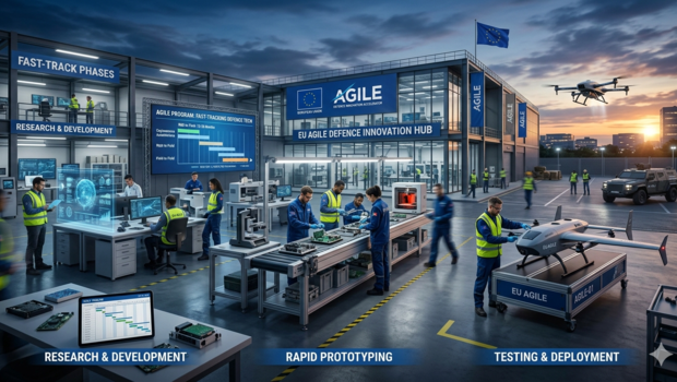Το AGILE, το οποίο προτάθηκε τον Μάρτιο του 2026 από την Ευρωπαϊκή Επιτροπή, είναι ένα εργαλείο ταχείας χρηματοδότησης για τη μετακίνηση των αμυντικών τεχνολογιών από την ανάπτυξη στην ανάπτυξη πολύ ταχύτερα από τα υφιστάμενα προγράμματα της ΕΕ.
