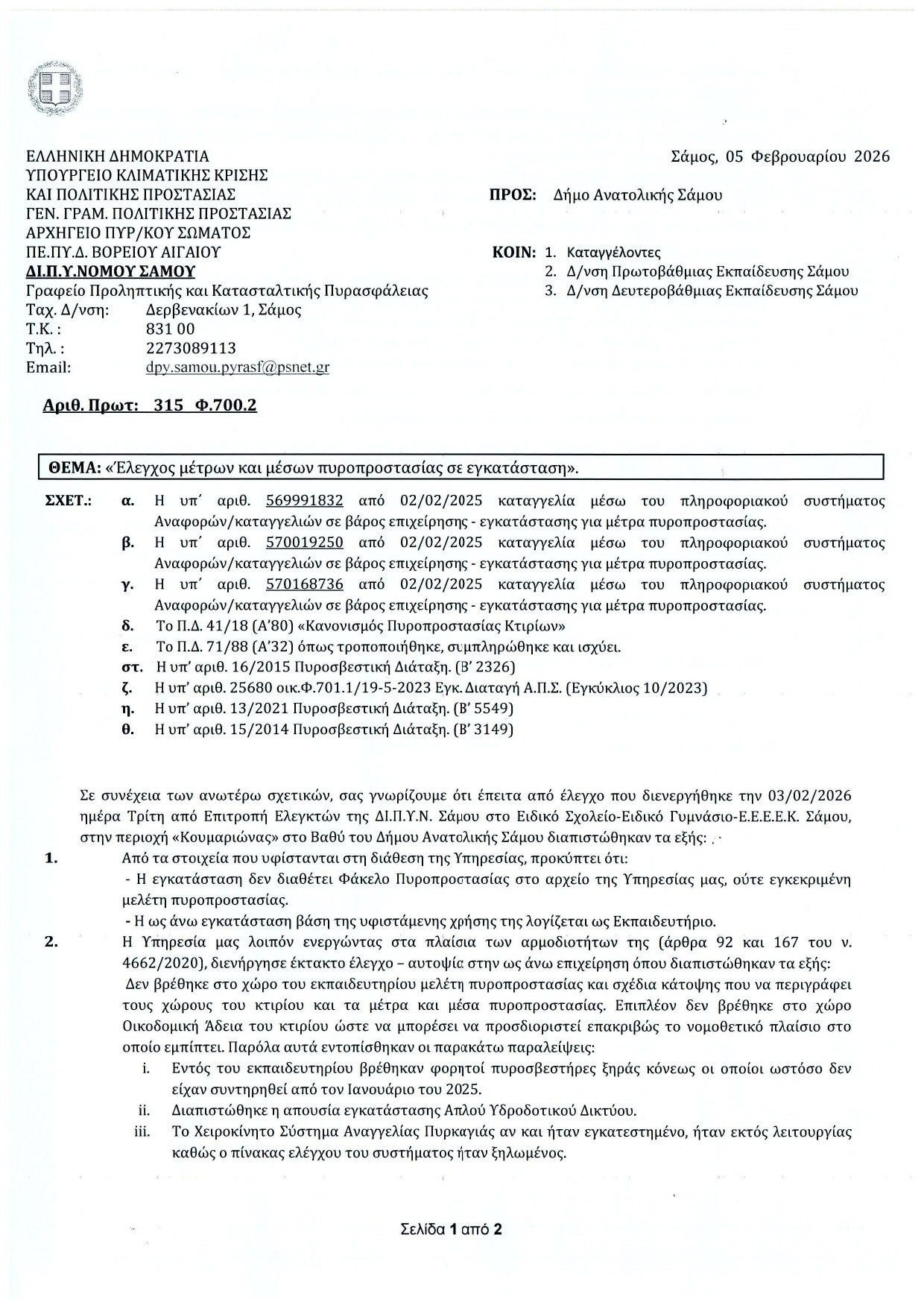 Αποκάλυψη in – Επίσημο έγγραφο επιβεβαιώνει ότι το κτήριο που στεγάζει το ειδικό σχολείο Σάμου δεν διαθέτει σύστημα πυρασφάλειας