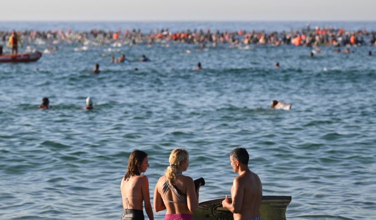 Εκατοντάδες σέρφερ και κολυμβητές συγκεντρώθηκαν στα νερά της παραλίας Μπόντι στο Σίδνεϊ για να αποτίσουν φόρο τιμής στα 15 θύματα της σφαγής της περασμένης Κυριακής.