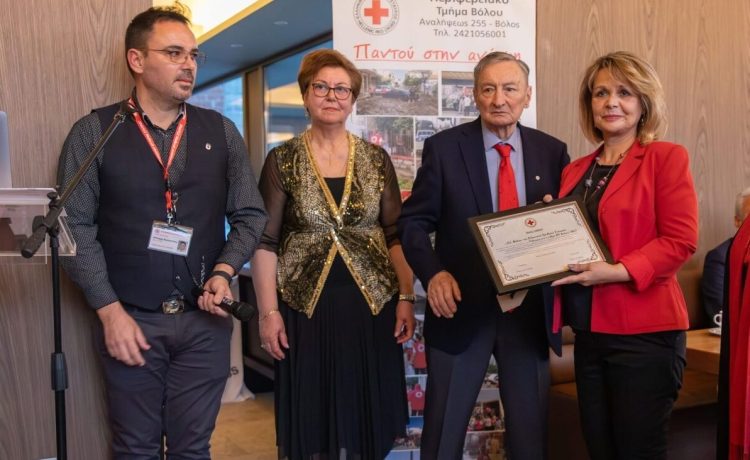 Επίσης, απονεμήθηκε τιμητική πλακέτα στον Πρόεδρο του Π.Τ. Βόλου, κ. Δημήτριο Κουτρούμπα, για την πολύτιμη και πολυετή προσφορά του στον Ελληνικό Ερυθρό Σταυρό.