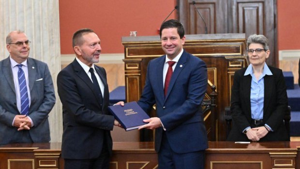 Ο τιμητικός τόμος επιδόθηκε από τον Πρύτανη του Πανεπιστημίου Αθηνών, καθηγητή Γεράσιμο Σιάσο.