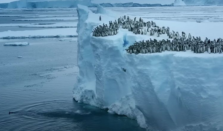 Εκπληκτικό βίντεο που έδωσε για πρώτη φορά στη δημοσιότητα το National Geographic καταγράφει τη στιγμή που δεκάδες μωρά πιγκουίνοι βουτούν από έναν τεράστιο βράχο ύψους 15 μέτρων για να κολυμπήσουν για πρώτη φορά στα παγωμένα νερά της Ανταρκτικής.