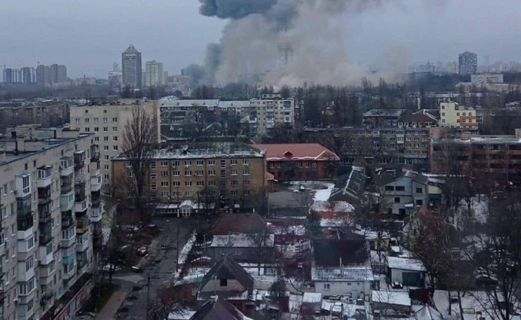 Ο δήμαρχος της πόλης, Βιτάλι Κλίτσκο, ανέφερε ότι η αντιαεροπορική άμυνα βρίσκεται σε εξέλιξη, με επιχειρήσεις να πραγματοποιούνται στη συνοικία Ομπολον, στον βόρειο τομέα της πόλης.