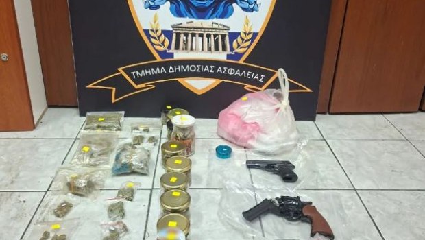 Σε έλεγχο που έγινε στη συνέχεια στην οικία τους από αστυνομικούς της Υποδιεύθυνσης Δίωξης και Εξιχνίασης Εγκλημάτων Αθηνών βρέθηκαν συνολικά και κατασχέθηκαν, μεταξύ άλλων: 2 κιλά και 782 γραμμ. ακατέργαστης κάνναβης, πιστόλι, καθώς και περίστροφο-ρέπλικα. Οι συλληφθέντες οδηγήθηκαν στον αρμόδιο εισαγγελέα.