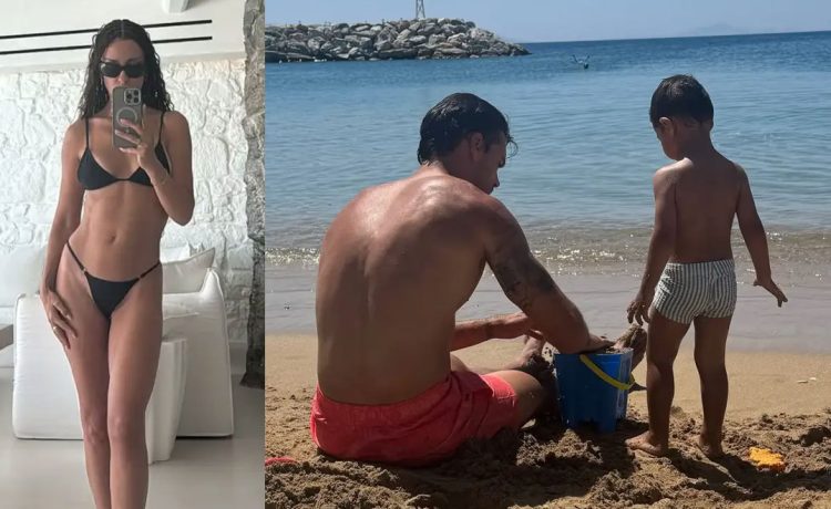 Ανάμεσα στα στιγμιότυπα που ανάρτησε, φαίνεται η ίδια να ποζάρει με το μαγιό της, ενώ ξεχωρίζει και η εικόνα του Αλμπέρτο Μποτία στη θάλασσα με τον μικρό Ερμή.