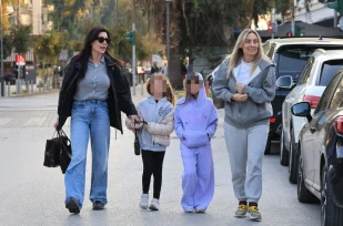 Η Ελεονώρα Μελέτη και η Φλορίντα Πετρουτσέλι πραγματοποίησαν μια χαλαρή, οικογενειακή βόλτα με τις κόρες τους, Αλεξάνδρα και Μαίρη, αντίστοιχα.