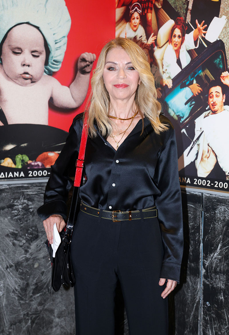 Η 70χρονη Έλλη Στάη απέδειξε για άλλη μία φορά ότι δεν θεωρείται τυχαία μία από τις πιο καλοντυμένες Ελληνίδες. Για την περίσταση επέλεξε ένα all time classic μαύρο παντελόνι το οποίο συνδύασε με μαύρο σατέν πουκάμισο και λουστρίνι γόβες.