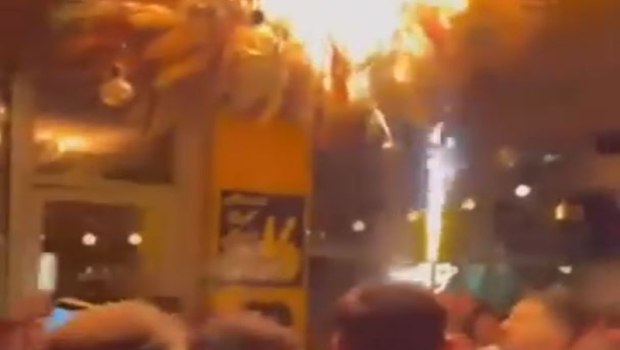 Εκείνο το περιστατικό είχε καταγράψει σε βίντεο με το κινητό του ένας από τους θαμώνες. Στις εικόνες φαίνεται ο σερβιτόρος να κρατά μια τούρτα με το κερί-βεγγαλικό αναμμένο.