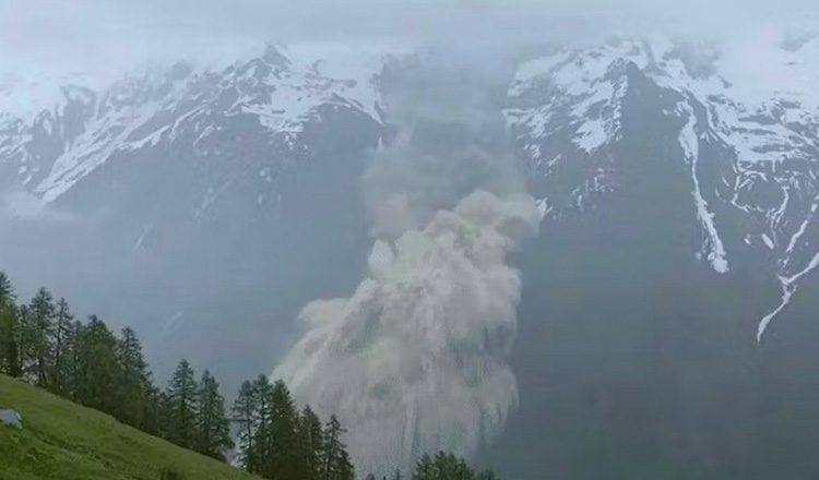 Ένα βίντεο που αναρτήθηκε σε ιστοτόπους κοινωνικής δικτύωσης δείχνει τη δραματική στιγμή, όταν ο παγετώνας καταρρέει εν μέρει και ένα τεράστιο νέφος καλύπτει ένα τμήμα του βουνού, ενώ βράχια και συντρίμμια κατρακυλούν στην πλαγιά και καταλήγουν στα περίχωρα του χωριού.