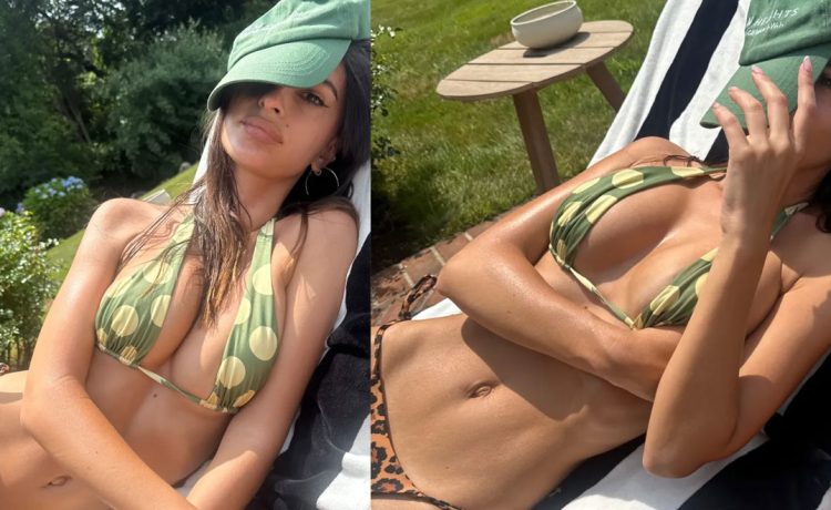 Συγκεκριμένα, σε stories που ανάρτησε, η Emily Ratajkowskiεμφανίζεται να φορά ένα πράσινο μπικίνι με κίτρινες βούλες, το οποίο συνδύασε με ένα επίσης, πράσινο καπέλο.