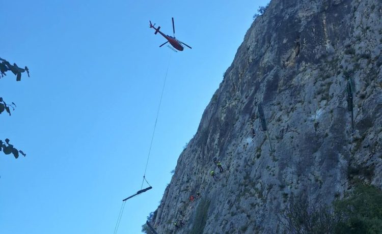 Στη σημερινή επιχείρηση πήρε μέρος ειδικά εξοπλισμένο ελικόπτερο, για τη μεταφορά των υλικών, καθώς και ειδικά εκπαιδευμένο προσωπικό, για την τοποθέτηση πλέγματος στον ορεινό όγκο, ώστε να αποκλειστεί κάθε κίνδυνος από πτώση βράχων