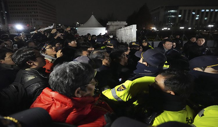 Το πρακτορείο Yonhap μετέδωσε ότι η είσοδος στο κτίριο του κοινοβουλίου έχει αποκλειστεί από κλούβες της αστυνομίας.