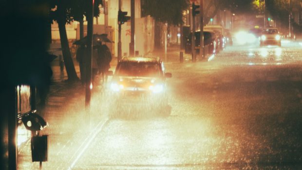 • Μείνετε μέσα και ανάψτε τα προειδοποιητικά φώτα στάσης (φώτα έκτακτης ανάγκης) μέχρι να κοπάσει η καταιγίδα.