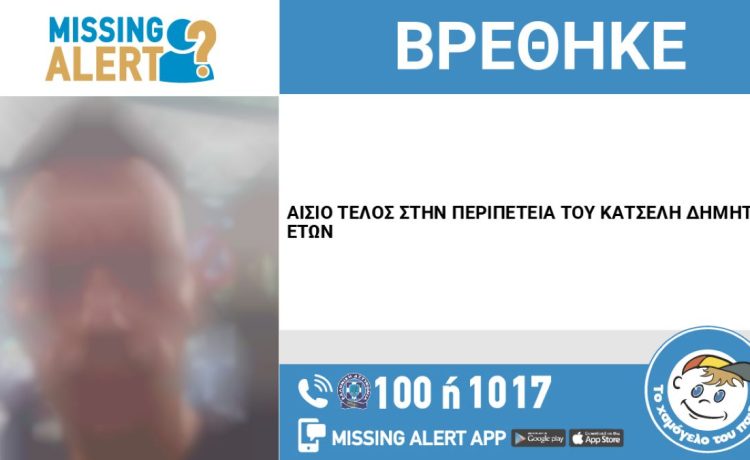 Σύμφωνα με ανακοίνωση από το “Χαμόγελο του παιδιού” η περιπέτεια του Καρδιτσιώτη Δημήτρη Κατσέλη 34 ετών, έληξε σήμερα, δίνοντας τέλος στην αγωνία των δικών του ανθρώπων που τον αναζητούσαν. Ο Κατσέλης Δημήτρης βρέθηκε στην περιοχή της Θεσσαλονίκης και είναι καλά στην υγεία του.