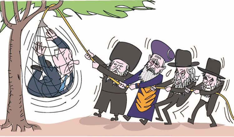 Αλλά η απειλή που πραγματικά τον κάνει να χάνει τον ύπνο του είναι αυτή που απειλεί τον κυβερνητικό συνασπισμό του. Η δυναμική που δημιουργήθηκε από την απόφαση του αρχιραβίνου της αίρεσης Ger Hasidic ότι το κόμμα Agudat Yisrael πρέπει να αποχωρήσει από την κυβέρνηση, την οποία υποστήριξαν οι ραβίνοι Moshe Hirsch και Dov Landau του Degel Hatorah και το Συμβούλιο των Σοφών της Τορά του κόμματος Shas, ήρθε γρήγορα και απροσδόκητα.