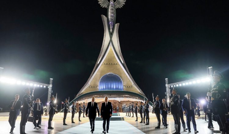 Φωτογραφίες και βίντεο που δημοσιοποιήθηκαν από το Κρεμλίνο και μεταδόθηκαν από ρωσικά πρακτορεία ειδήσεων εικονίζουν τον Ρώσο πρόεδρο να επισκέπτεται το πάρκο του Νέου Ουζμπεκιστάν στην Τασκένδη και να καταθέτει στεφάνι στο μνημείο της ανεξαρτησίας του Ουζμπεκιστάν.