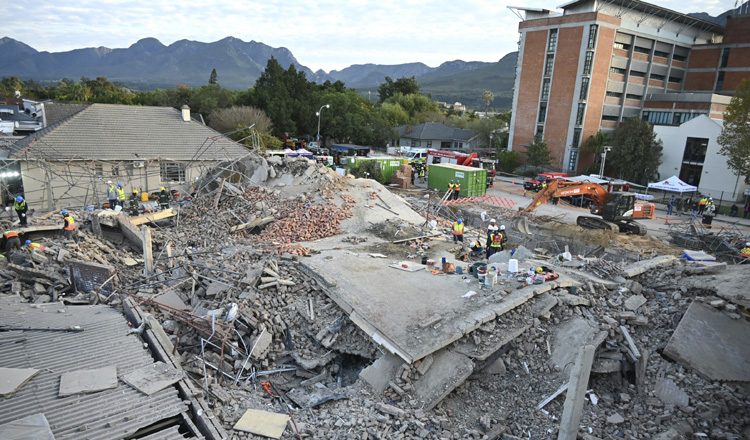 Σωστικά συνεργεία ενέτειναν χθες Τρίτη τις προσπάθειές τους για να βρουν και να βγάλουν δεκάδες εργάτες παγιδευμένους στα συντρίμμια κτηρίου υπό ανέγερση που κατέρρευσε τη Δευτέρα στην Τζορτζ, στα παράλια της Νότιας Αφρικής, προκαλώντας τον θάνατο επτά ανθρώπων, σύμφωνα με τον πιο πρόσφατο επίσημο απολογισμό των Αρχών.