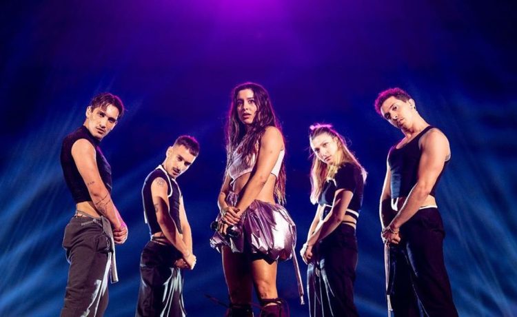 Στη σκηνή, η Μαρίνα Σάττι προτίμησε ένα ρούχο που σχολιάστηκε ποικιλοτρόπως, ενώ οι χορευτές που τη συνόδευαν στο stage είναι τρεις άνδρες και μία γυναίκα σε μία street dance χορογραφία.