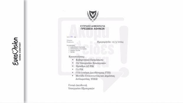 Σύμφωνα με όσα αποκαλύπτονται στην εφημερίδα, ο πρόεδρος της ΕΡΤ προαναγγέλλει στις 22 Φεβρουαρίου στον πρέσβη της Κύπρου στην Αθήνα, πως η Ελλάδα θα δώσει χαμηλή βαθμολογία στην κυπριακή συμμετοχή στην Eurovision 2024.