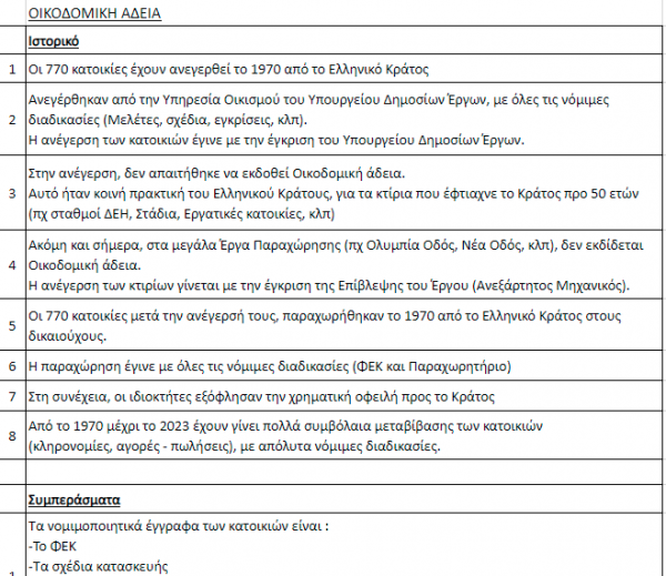 Τα συμπεράσματα της έρευνας ανεξάρτητου μηχανικού του Τεχνικού Επιμελητηρίου Ελλάδας επιβεβαιώνει ότι οι προσφυγικές πολυκατοικίες δεν διαθέτουν οικοδομική άδεια και τα νομιμοποιητικά τους έγγραφα είναι το ΦΕΚ και τα σχέδια κατασκευής