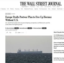 Ειδικότερα, το δημοσίευμα αναφέρει ότι ευρωπαϊκές χώρες επεξεργάζονται σχέδιο για τη συγκρότηση μιας ευρείας διεθνούς συμμαχίας, που θα συμβάλει στην αποκατάσταση της ναυσιπλοΐας στα Στενά του Ορμούζ, συμπεριλαμβανομένης της αποστολής ναρκαλιευτικών και άλλων στρατιωτικών πλοίων.
