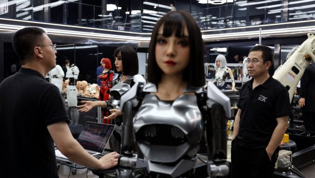 Στο εργοστάσιο της εταιρείας Ex-Robots στην παράκτια κινεζική πόλη του Νταλιάν, οι μηχανικοί αναπτύσσουν ανθρωποειδή ρομπότ δίνοντας έμφαση στις εκφράσεις του προσώπου.
