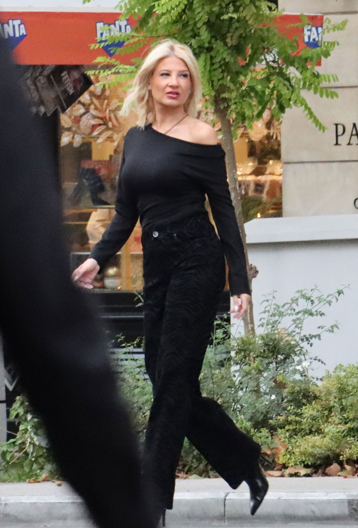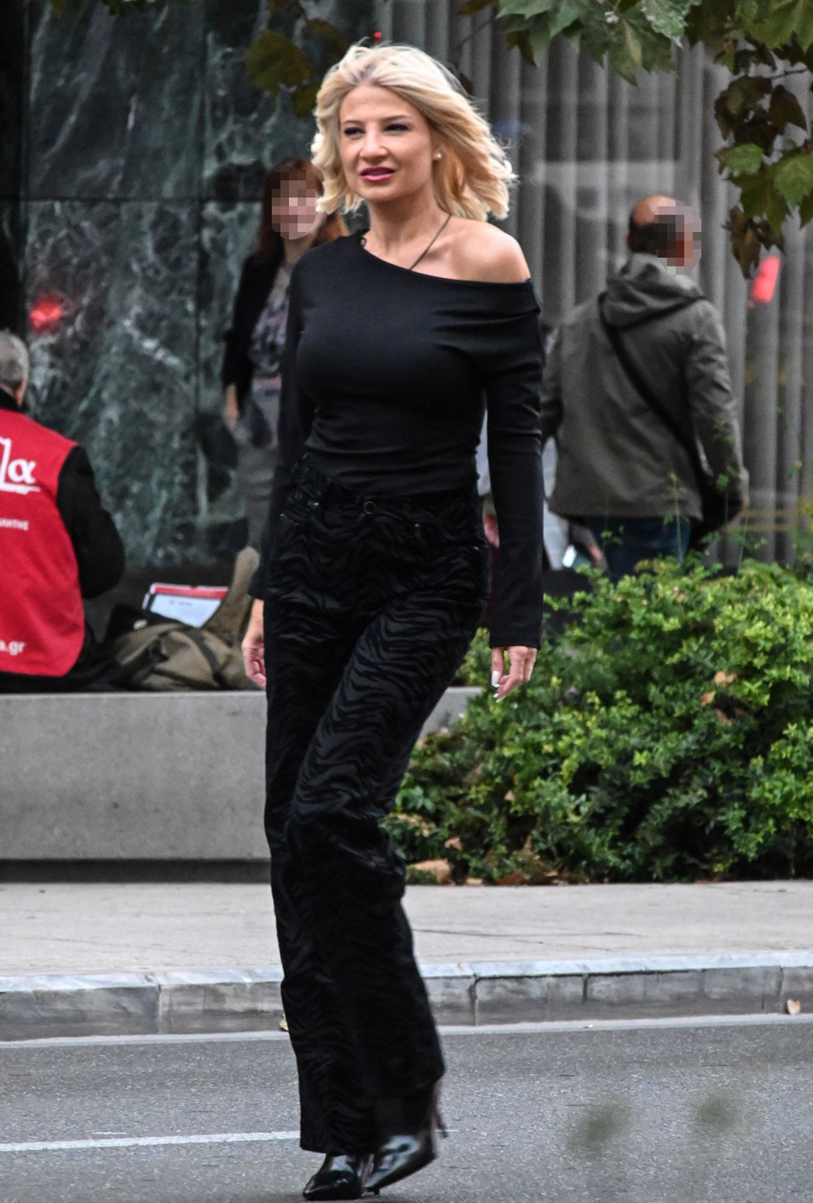 Η παρουσιάστρια του «Buongiorno» επέλεξε ένα minimal, αλλά άκρως εντυπωσιακό total black look: ψηλόμεσο ίσιο μαύρο παντελόνι, συνδυασμένο άψογα με elegant one-shoulder top στην ίδια απόχρωση.