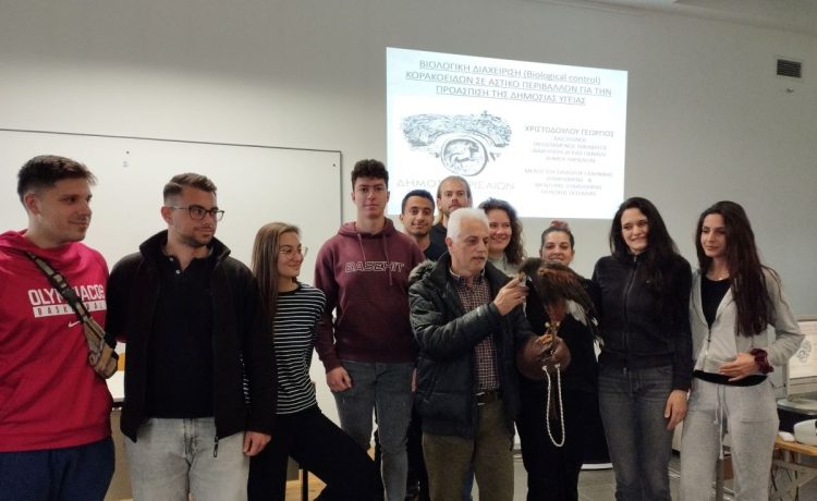 Το πρωτοποριακό πρόγραμμα του Δήμου Λαρισαίων για τη βιολογική διαχείριση των κορακοειδών σε αστικό περιβάλλον, με τη χρήση γερακιών, παρουσιάστηκε στο πλαίσιο εκπαιδευτικής εκδήλωσης του Τμήματος Κτηνιατρικής του Πανεπιστημίου Θεσσαλίας, στην Καρδίτσα.