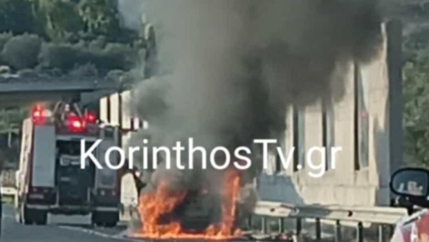 Αυτοκίνητο τυλίχθηκε στις φλόγες στην Εθνική Κορίνθου – Πατρών