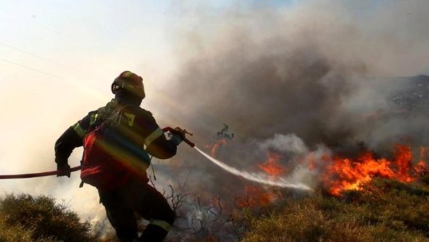 Σύμφωνα με την Πυροσβεστική η φωτιά καίει σε αγροτοδασική έκταση.