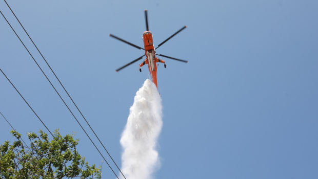 Για την κατάσβεσή της έχουν κινητοποιηθεί και επιχειρούν 50 πυροσβέστες, με 2 ομάδες πεζοπόρου τμήματος της 3ης ΕΜΟΔΕ, 15 οχήματα και 2 ελικόπτερα. Το έργο τους δυσχαιρένουν οι ισχυροί άνεμοι που πνέουν στην περιοχή.