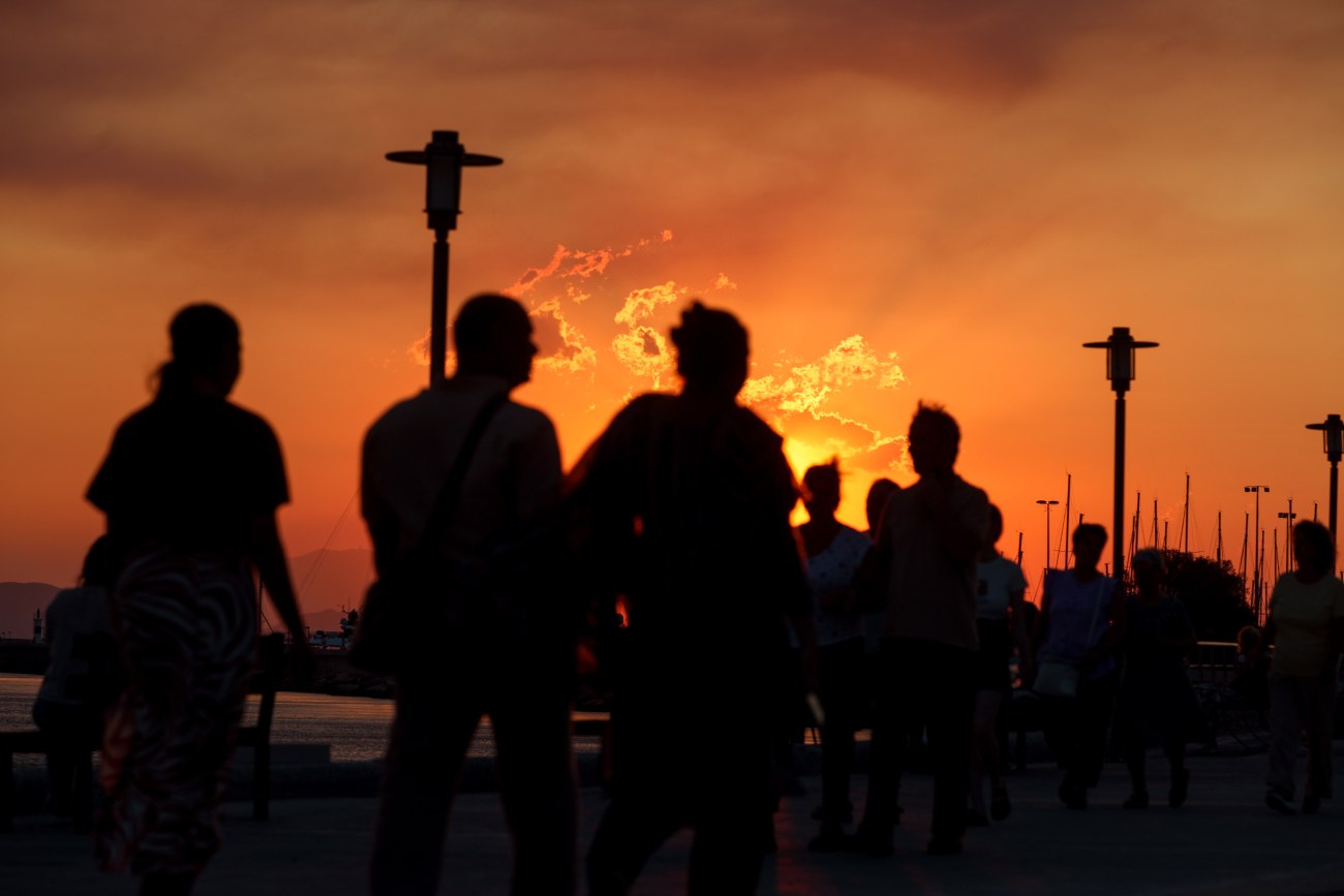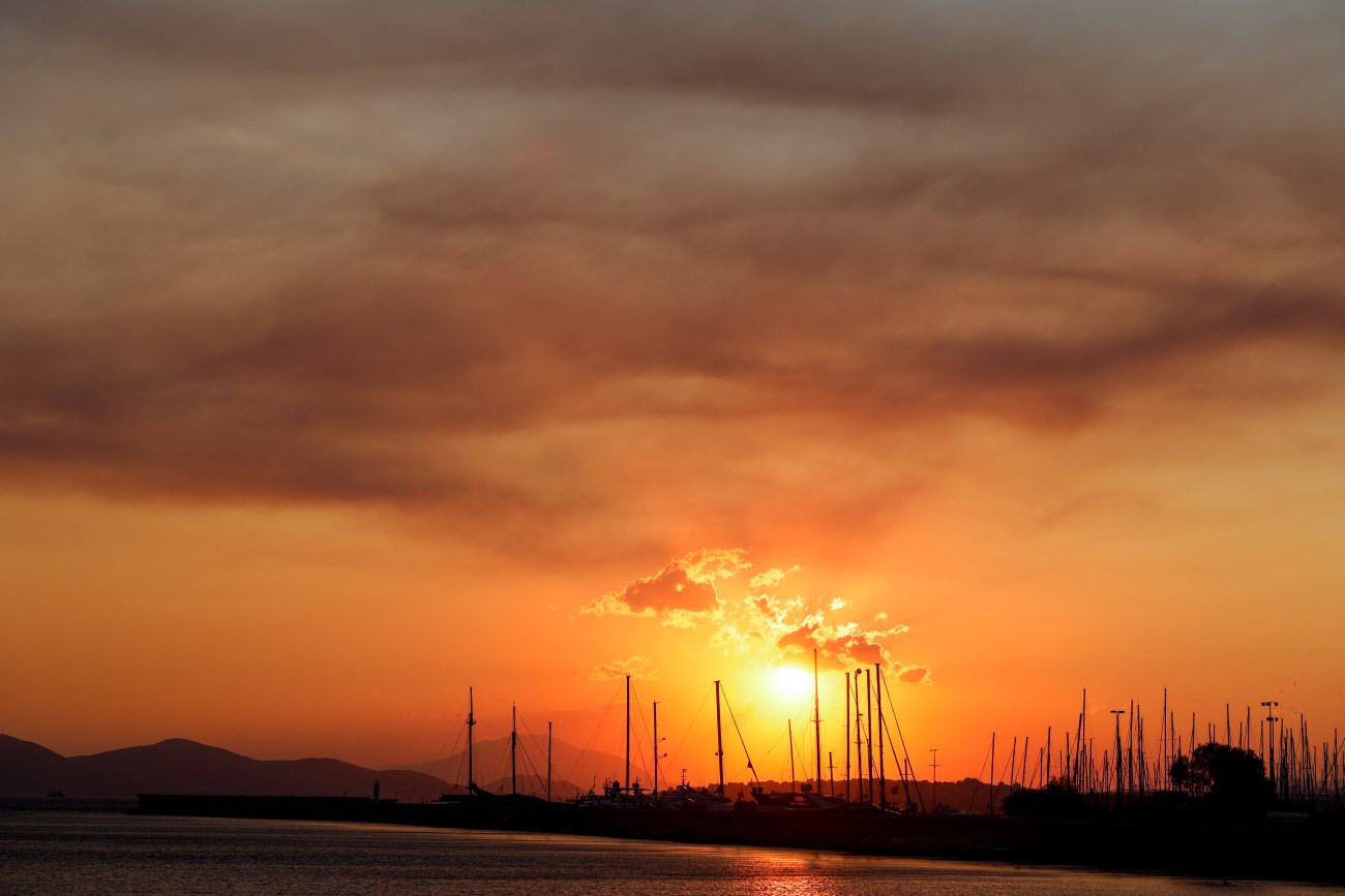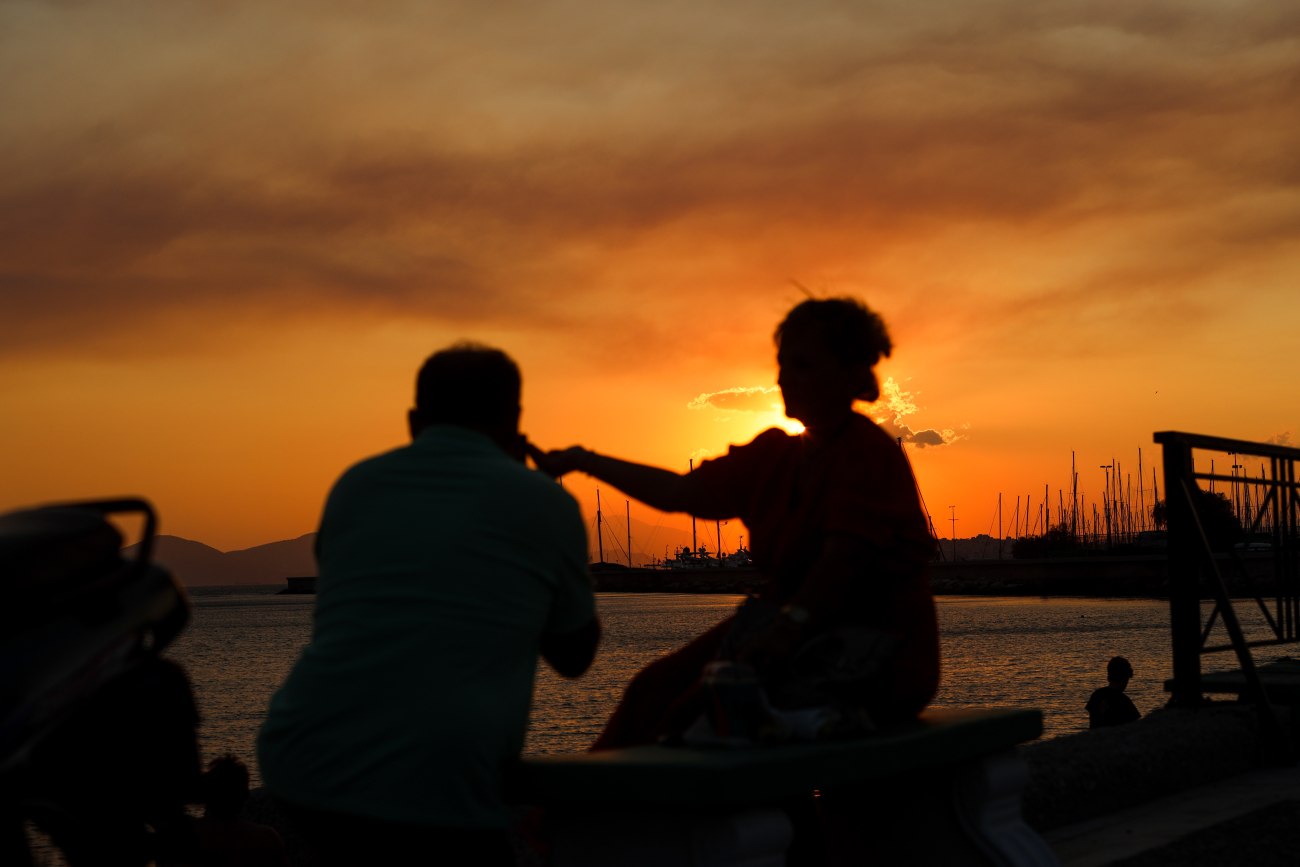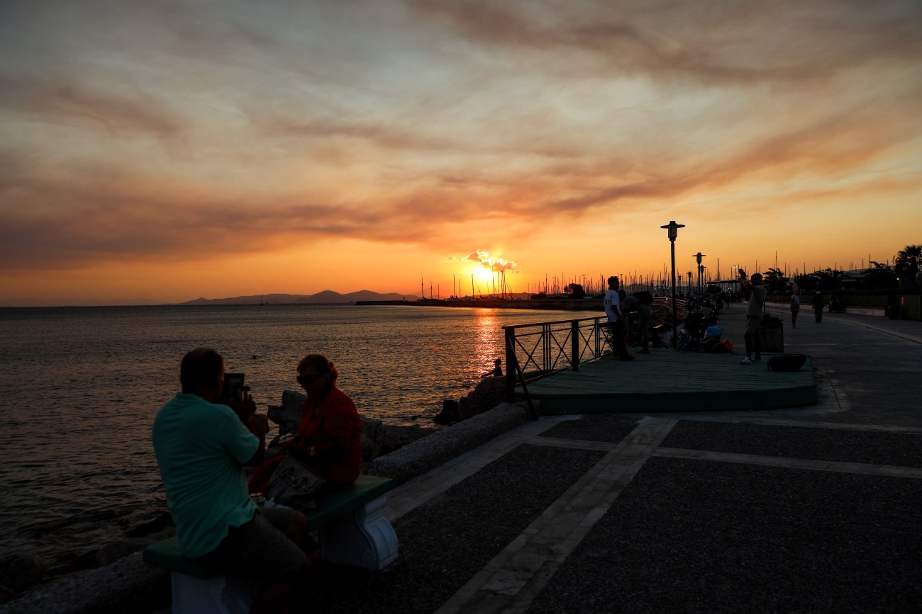 Ο καπνός από τη φωτιά στην Κερατέα όπως φαινόταν νωρίτερα από την παραλία του Αλίμου: