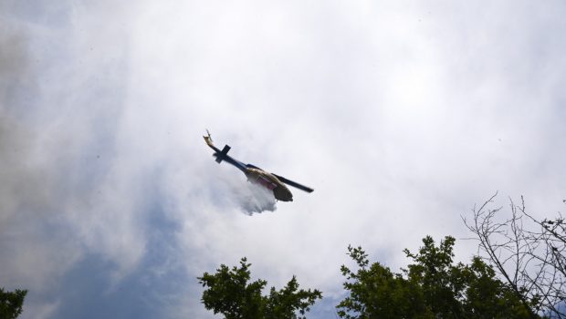 Στο έργο των πυροσβεστών συνδράμει από αέρος ένα ελικόπτερο, ενώ στο έδαφος βρίσκονται στη διάθεση της Π.Υ. υδροφόρες ΟΤΑ.