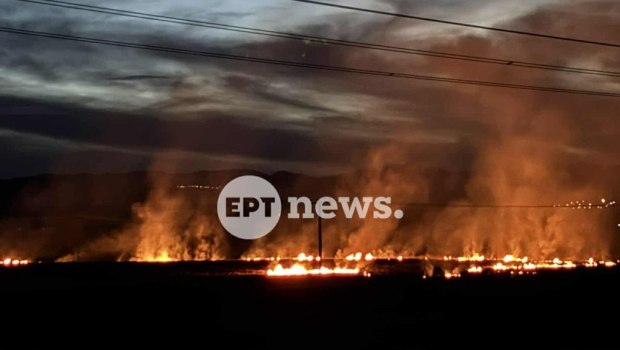 Η φωτιά καίει σε χορτολιβαδική έκταση με χαμηλή βλάστηση και στο σημείο έσπευσαν ισχυρές πυροσβεστικές δυνάμεις.