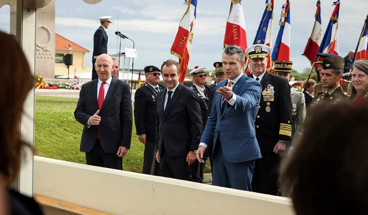 «Σήμερα, δεν πρέπει να λησμονούμε τίποτα, απέναντι στους κινδύνους ενός κόσμου όπου επιστρέφουν (…) οι ιδεολογίες του μίσους», είπε ο Λεκορνί το πρωί, στο κοιμητήριο όπου αναπαύονται 9.000 Αμερικανοί στρατιώτες, οι πεσόντες στη μάχη της Νορμανδίας. Ο Χέγκσεθ από την πλευρά του χαιρέτισε «τους απλούς ανθρώπους με το εξαιρετικό θάρρος» που πολέμησαν «ώστε να μην χρειαστεί να πολεμήσουν τα παιδιά και τα εγγόνια μας».