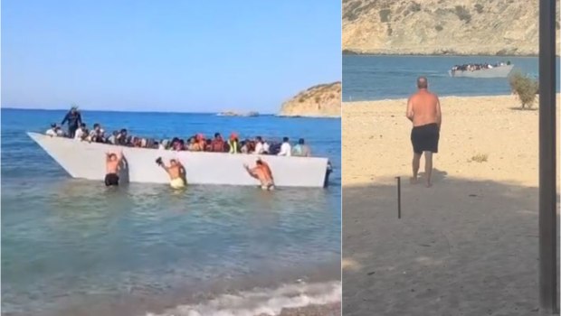 Οι λουόμενοι που καταγράφονται στο βίντεο να «σπρώχνουν» το σκάφος με τους πρόσφυγες, ουσιαστικά βοηθούν τη βάρκα να ξεκολλήσει και να συνεχίσει το ταξίδι προς το λιμάνι του Καραβέ.