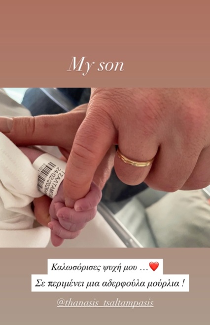 Στο τρυφερό στιγμιότυπο που ανήρτησε, ο Θανάσης Τσαλταμπάσης φαίνεται να κρατά το χεράκι του μωρού, σε μια ιδιαίτερα συγκινητική στιγμή. Στη λεζάντα της φωτογραφίας, η Αγοραστή Αρβανίτη έγραψε: «Καλωσόρισες ψυχή μου. Σε περιμένει μια αδελφή μούρλια».