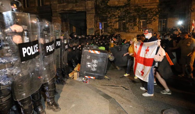 Η αστυνομία της Γεωργίας έκανε χρήση βίας σήμερα εναντίον ειρηνικών διαδηλωτών στο Τμπιλίσι, όπου χιλιάδες άνθρωποι είχαν συγκεντρωθεί για τρίτη εβδομάδα για να διαμαρτυρηθούν κατά ενός αμφιλεγόμενου νομοσχεδίου, το οποίο κατήγγειλαν οι Βρυξέλλες ότι υπονομεύει τις ευρωπαϊκές φιλοδοξίες της χώρας.