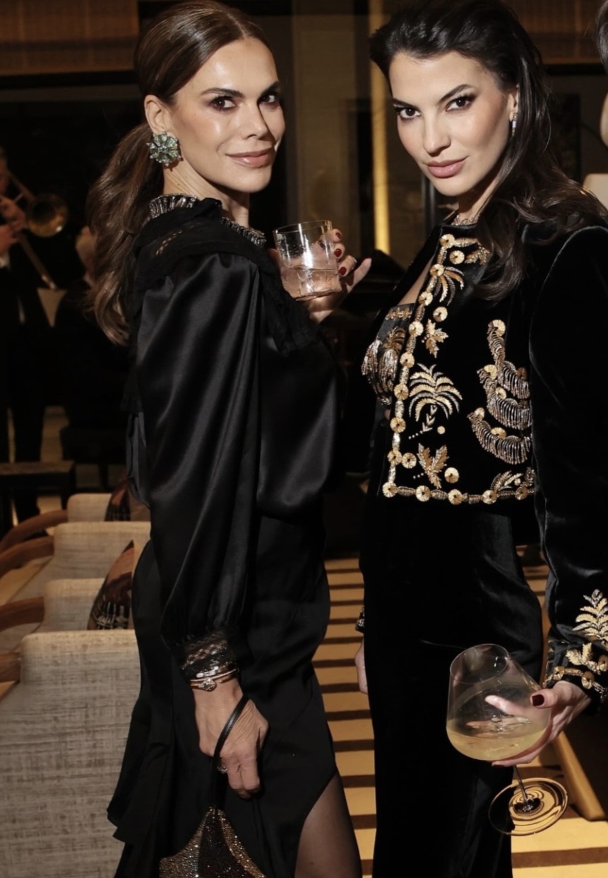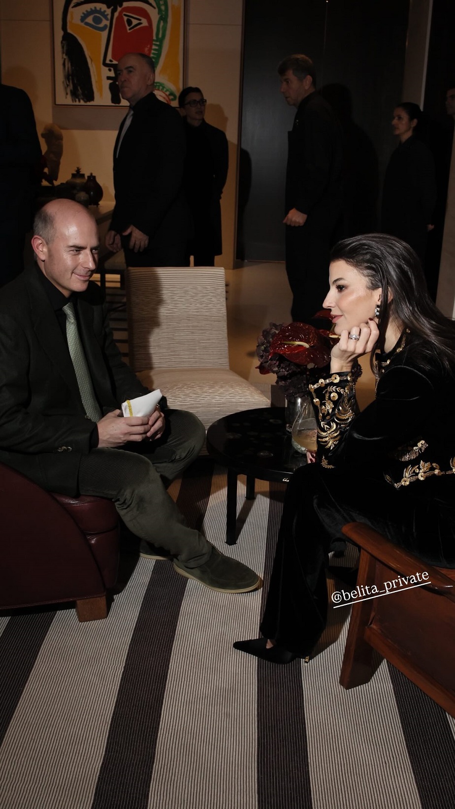 Η σύζυγος του Γιάννη Κούστα έδωσε το δικό της μάθημα στυλ, επιλέγοντας για τη δεξίωση ένα σύνολο που απέπνεε αυτοκρατορική φινέτσα. Φορώντας ένα μαύρο βελούδινο παντελόνι και ένα ασορτί τοπ με διακριτικές χρυσές λεπτομέρειες, τράβηξε τα βλέμματα. Το look ολοκληρώθηκε, όπως φάνηκε σε προηγούμενες λήψεις, με ένα σακάκι στο ίδιο, πολυτελές ύφος, αναδεικνύοντας μια εντυπωσιακή και διαχρονική επιλογή.