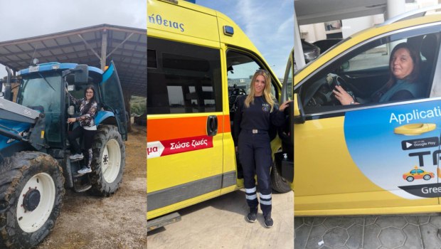 Κάποτε, υπήρχαν επαγγέλματα που θεωρούνταν σχεδόν αυτονόητα «αντρικά». Χώροι δουλειάς που για δεκαετίες έμοιαζαν να έχουν υψώσει αόρατα τείχη γύρω τους. Τα χωράφια με τα βαριά μηχανήματα, τα ασθενοφόρα που τρέχουν με σειρήνες στους δρόμους, το τιμόνι ενός ταξί που διασχίζει ασταμάτητα την πόλη.