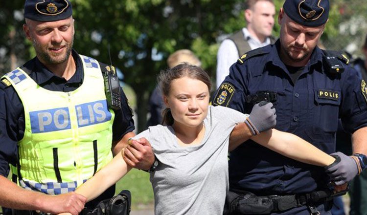 Πριν τεθεί υπό κράτηση, η Τούνμπεργκ είπε στους δημοσιογράφους ότι διαδηλώνει επειδή ο κόσμος βρίσκεται αντιμέτωπος με μια υπαρξιακή κρίση.
